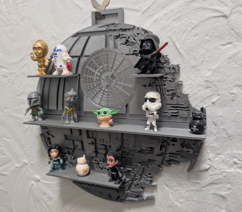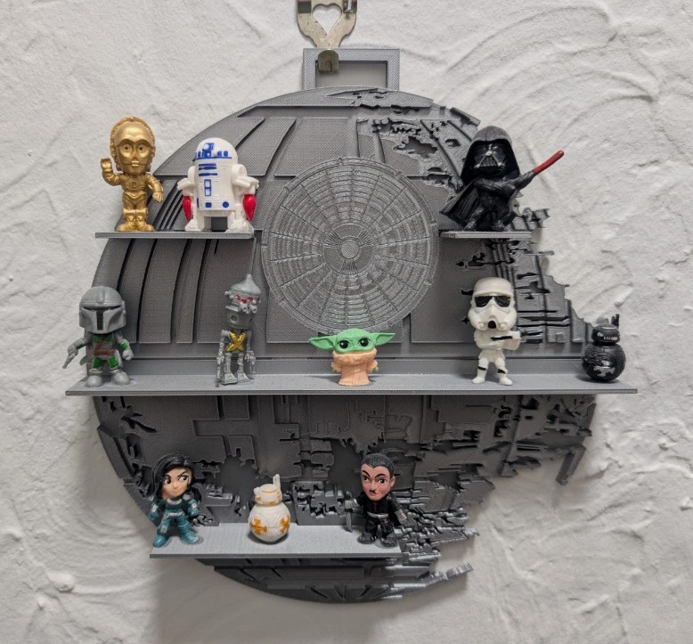 Bring a piece of the galaxy into your home with this 3D printed Death Star display shelf! Designed with iconic sci-fi styling, this miniature wall/display piece is ideal for showcasing your favourite LEGO minifigures, small collectibles, or the figures shown in the photos (also available for purchase).